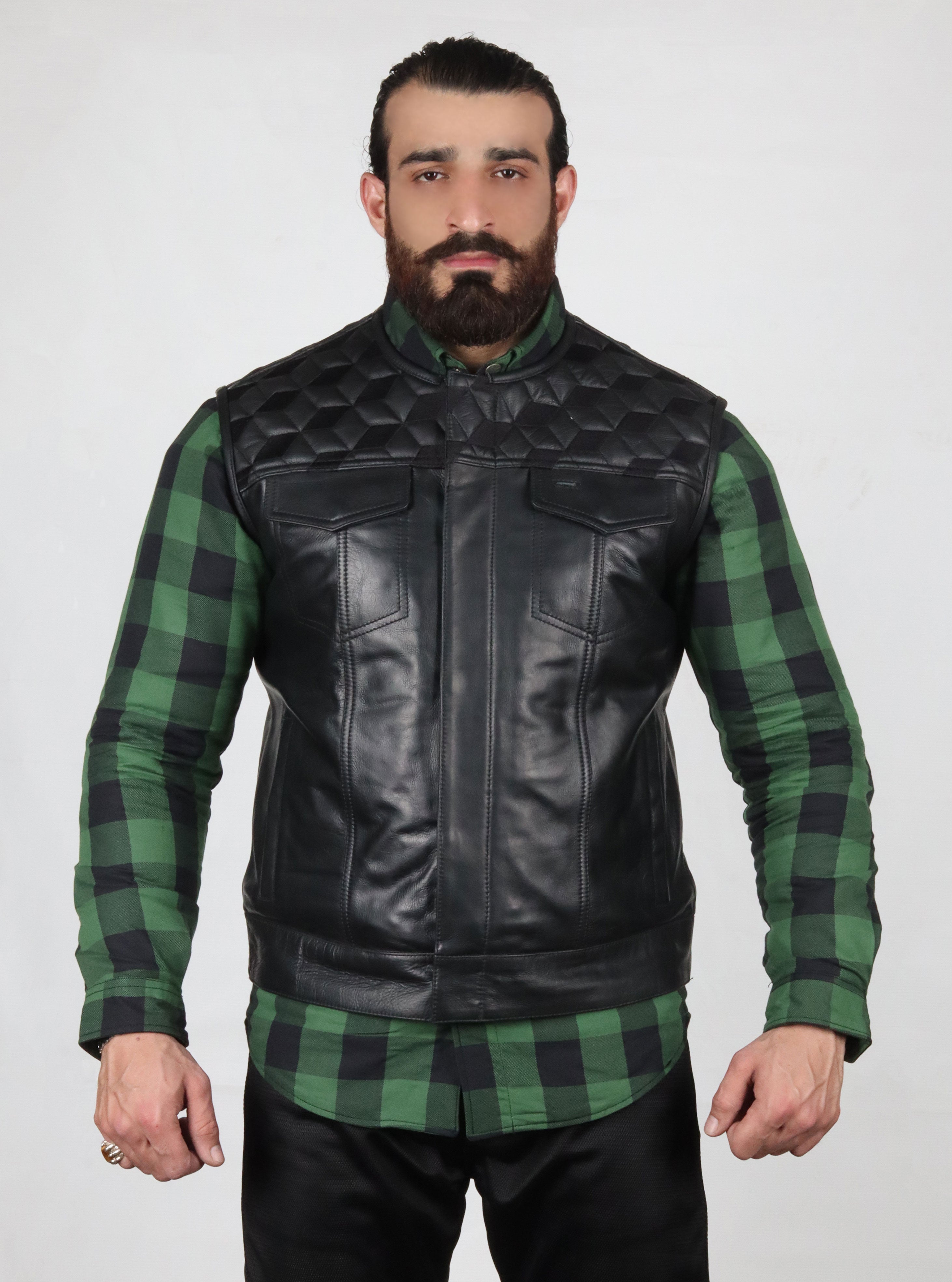 Understated, powerful, and timeless — this all-black leather motorcycle vest is the ultimate expression of sleek, minimalist design with maximum impact. Crafted from premium genuine leather, it features tonal black stitching and quilted shoulder detailing for a subtle yet bold look that exudes confidence and control. Designed for riders who prefer refined style without compromising on performance.